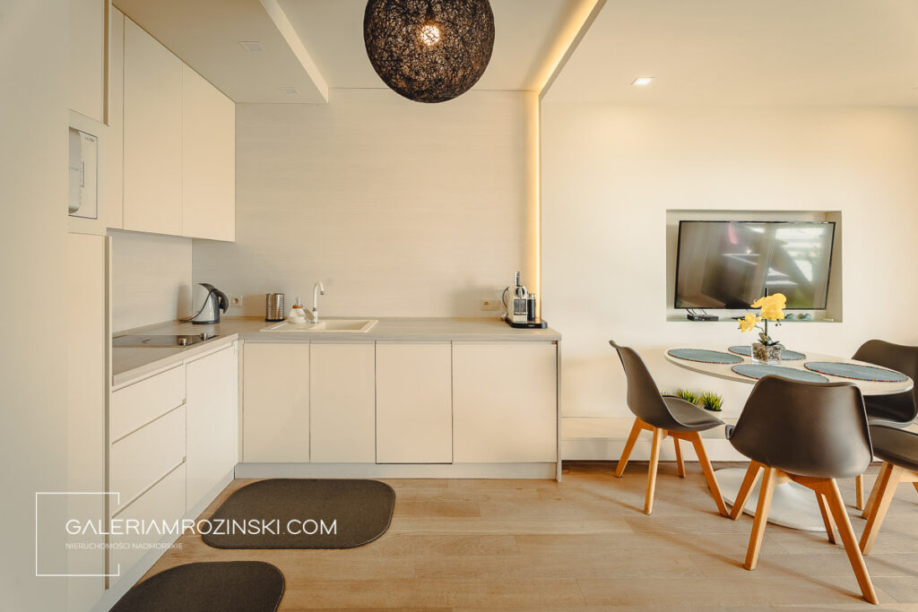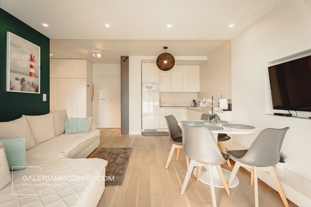 Jasny apartament o powierzchni 46m2 w nowoczesnym osiedlu mieszkaniowo-apartamentowym “Kropla Bałtyku” we wschodniej części Darłówka – turystycznej dzielnicy królewskiego miasta Darłowa.