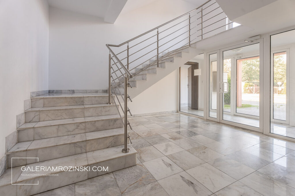 Do mieszkania na 1 piętrze prowadzi stylowa klatka schodowa;